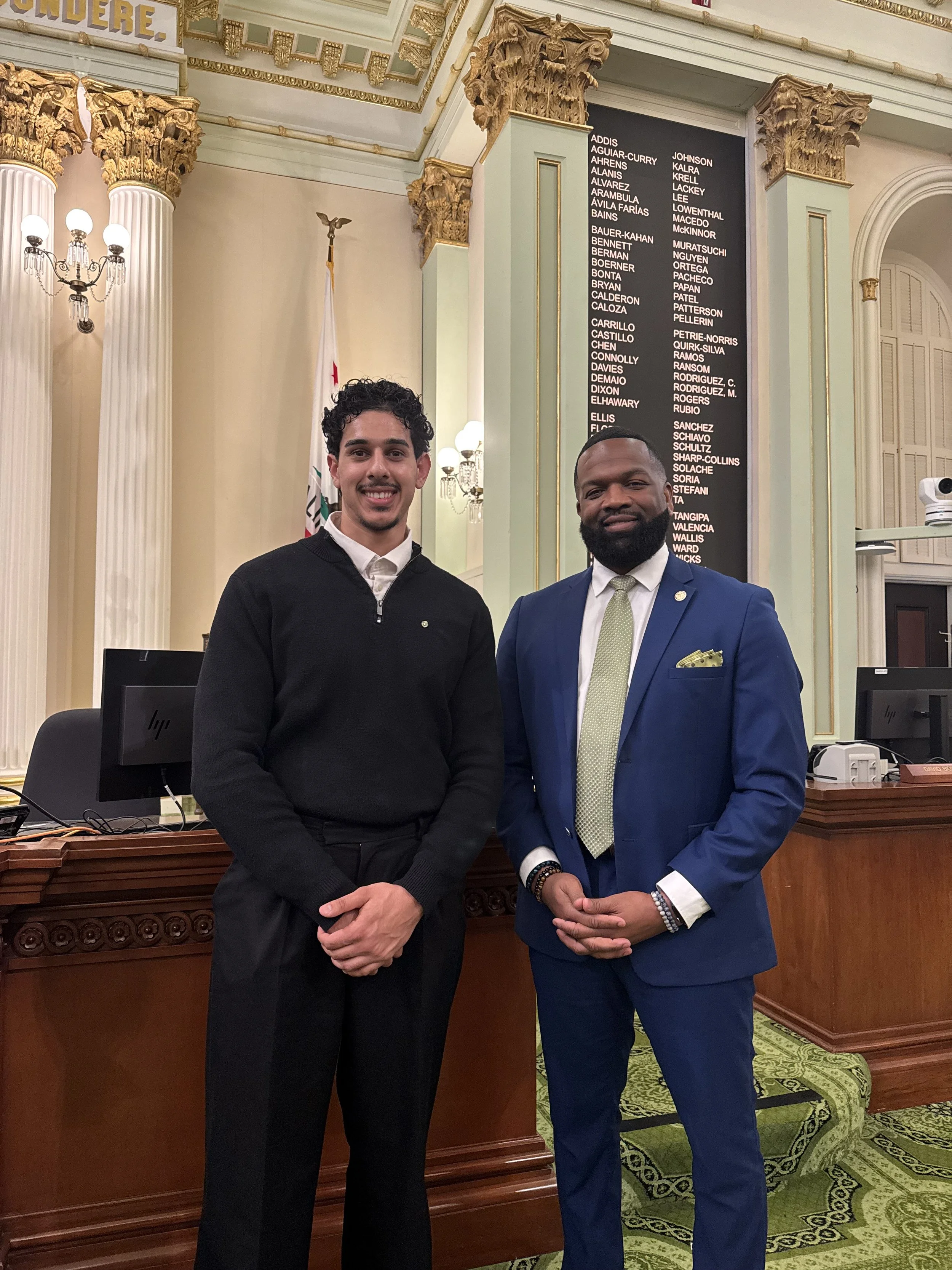Alexios Vakis on the floor of the California State Assembly chamber, Sacramento — engaging directly with the legislative process that shapes expanded learning policy and funding across California.